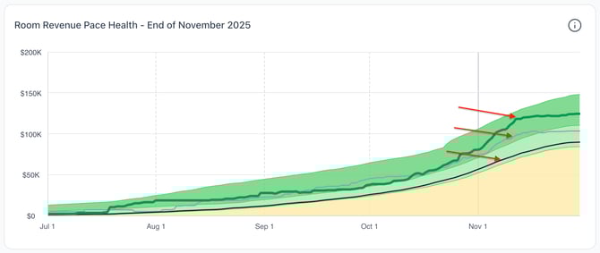 Pace Health shows how your room revenue is building over time for a future month or a specific stay date, and whether that pace is healthy given current market conditions.