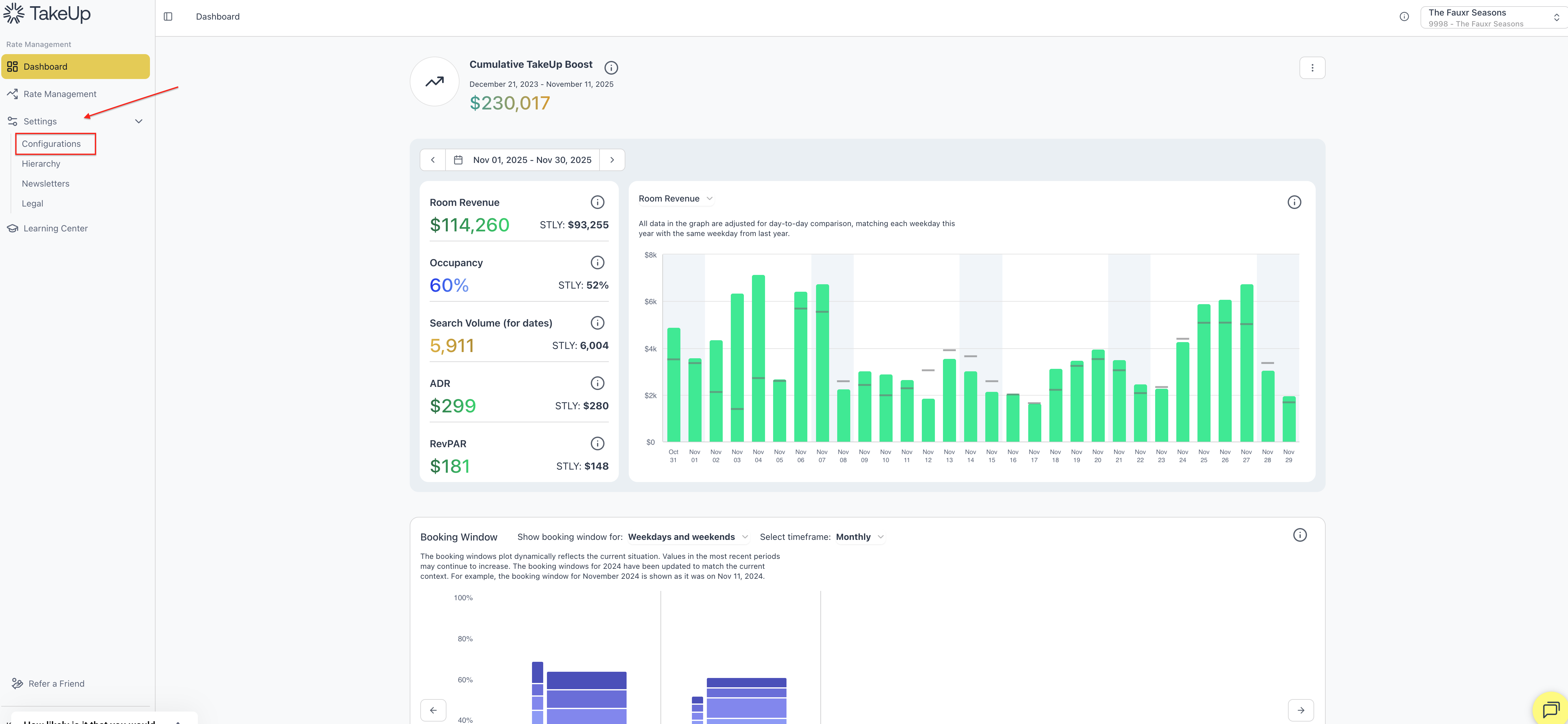 Your property's default rate Behavior can be found by navigating to the "Settings" tab in the control panel on the left side of the web app and selecting "TakeUp Configuration."