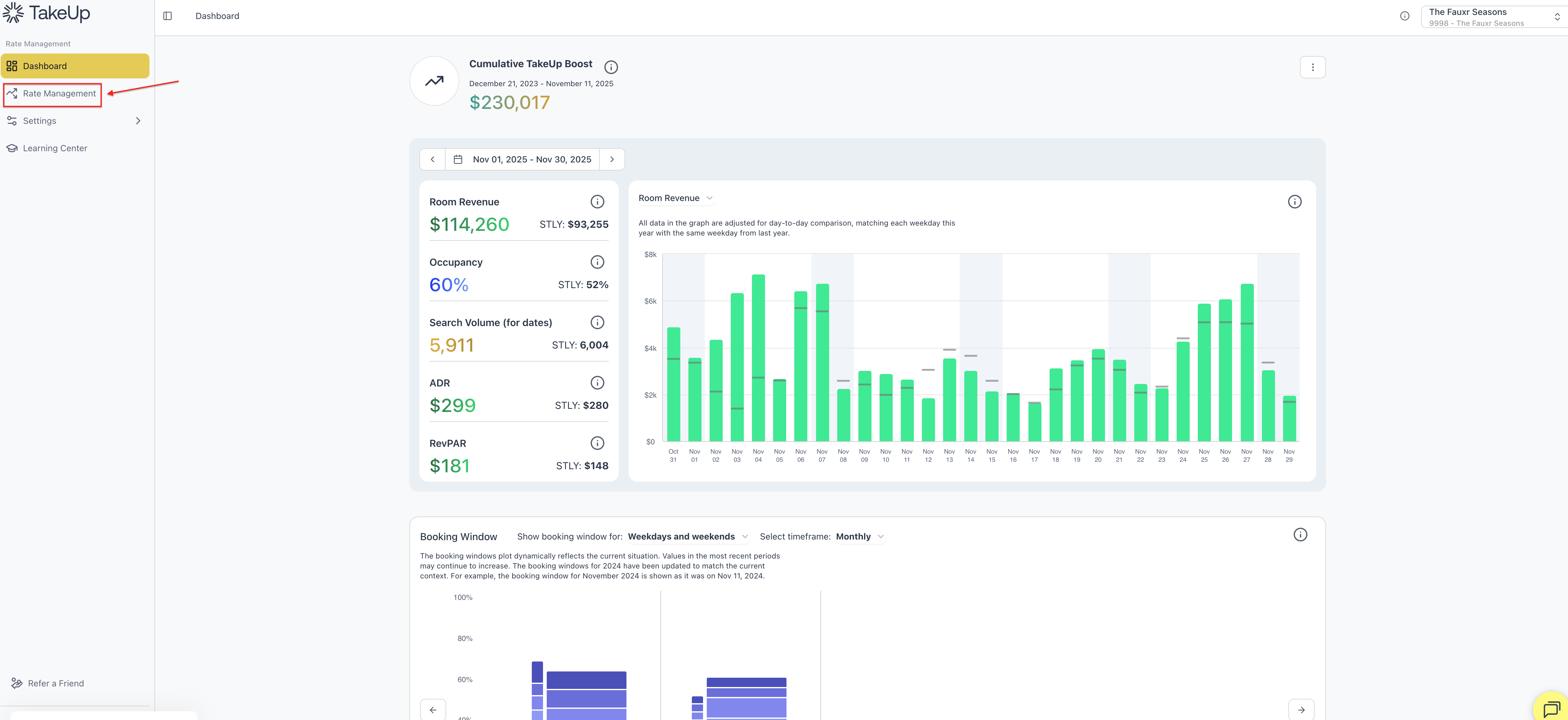 To change your TakeUp Behavior setting at the monthly level, start by navigating to the Rate Management tab on the left hand navigation.