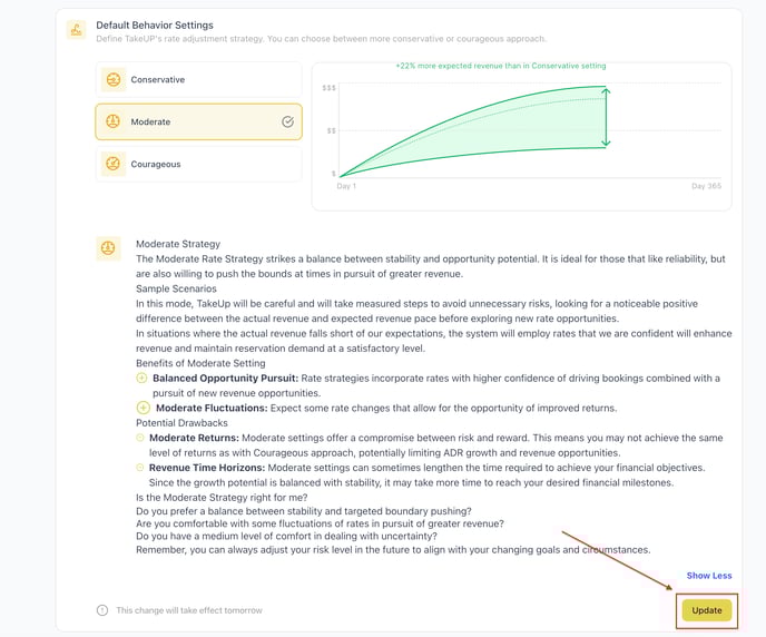 Learn how to align TakeUp Behavior with your rate strategy - from conservative to courageous.