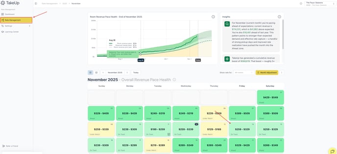 - TakeUp Target: The target rate is the current published rate that TakeUp has chosen as the most optimal nightly rate for that day.